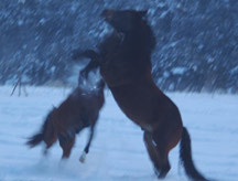 A week after the vet accident, while my husband was leading Danny to the round pen, he reared and pulled the lead rope out of his hands, galloped to the pasture where our pregnant mare was staying and terrified her with bucking and threats. Then Danny charged at me -- a first! I ducked into a juniper grove and he missed. Finally Danny quit bucking and charging around and my husband led him back to his bachelor pasture.